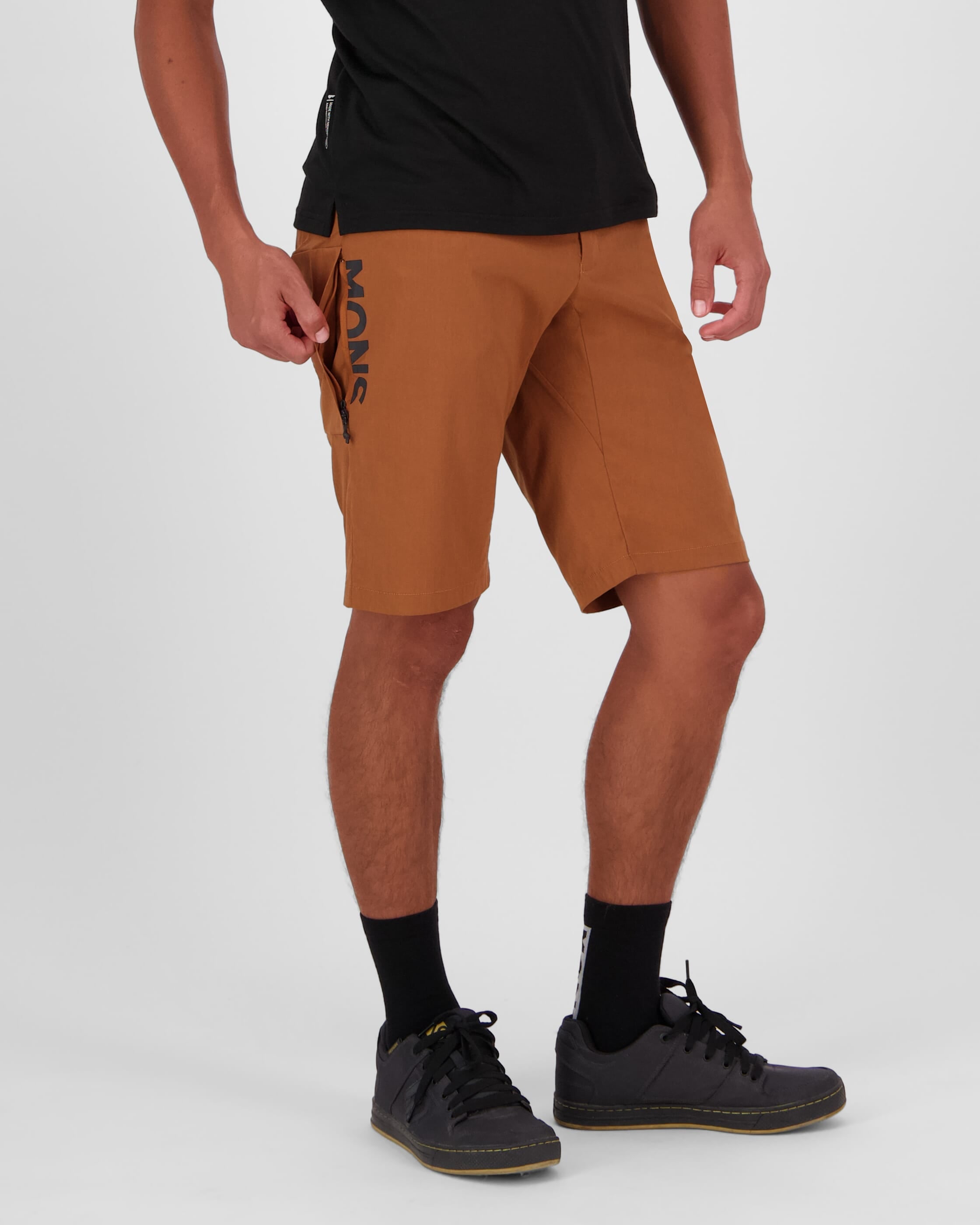 - On-bike fit - fully articulated for movement, featuring room for low-profile knee pads, elasticated waistband and slide lock button